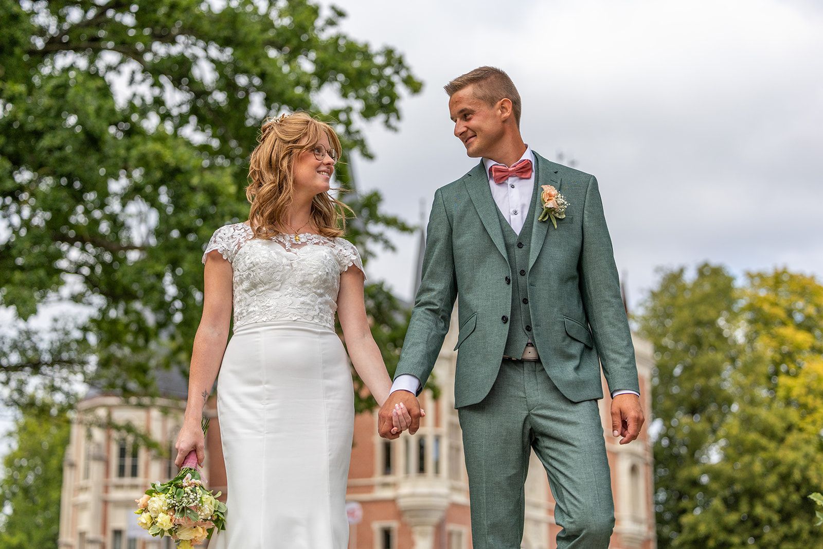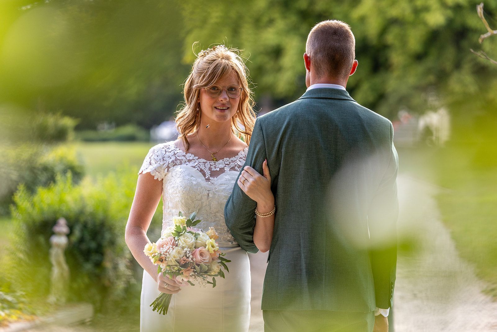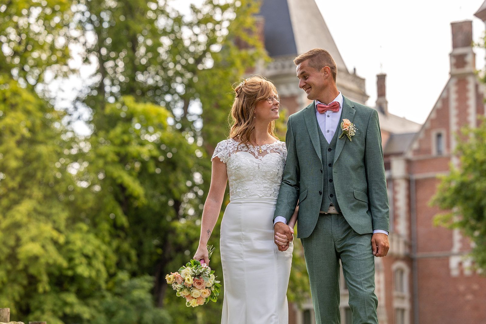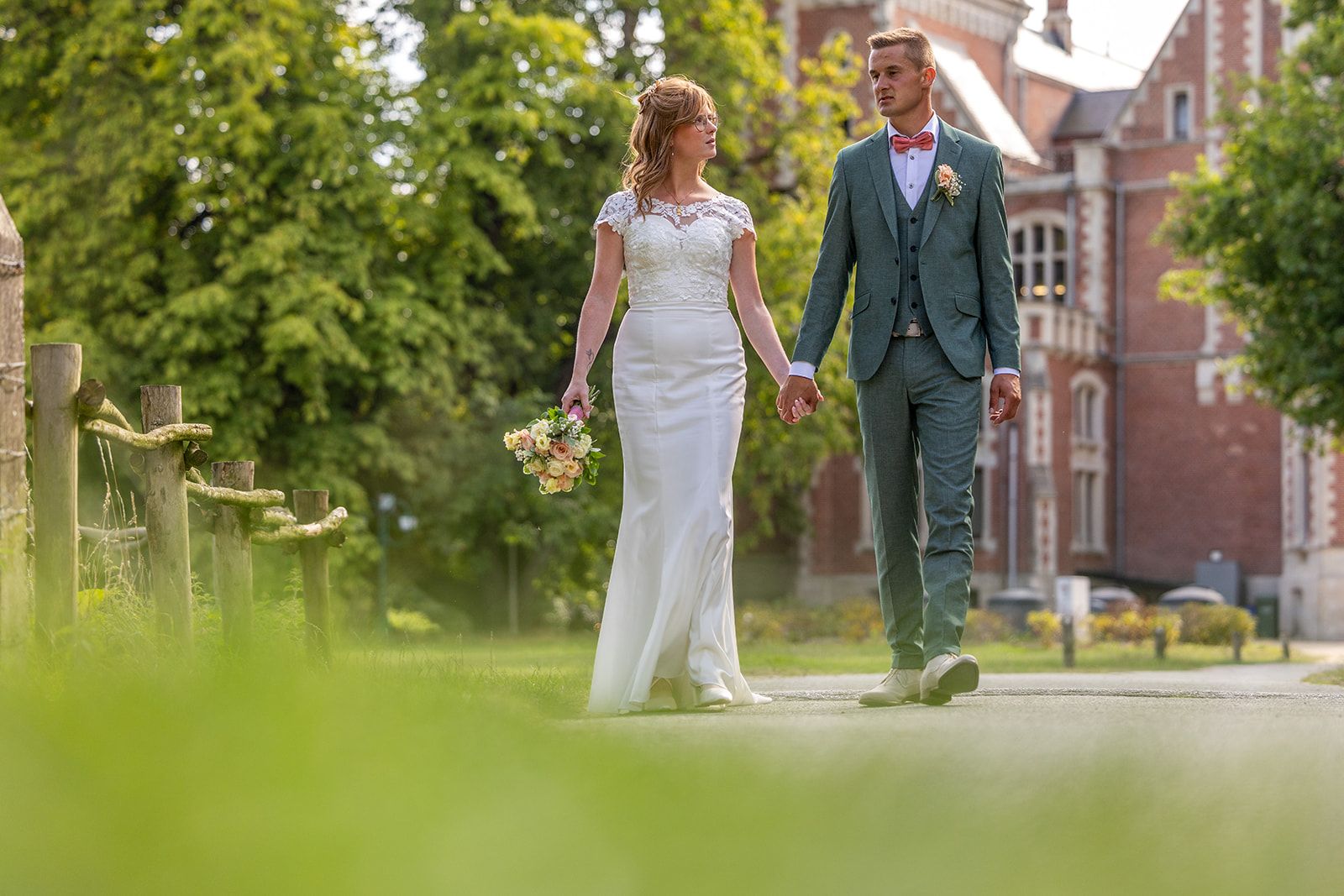 Na de ceremonie trokken we naar het Kasteel van Aartrijke voor de trouwshoot. De historische charme, het groen en de rustige omgeving boden het perfecte decor voor tijdloze en elegante foto’s. Het koppel straalde, en hun natuurlijke connectie zorgde voor beelden vol gevoel en spontaniteit.