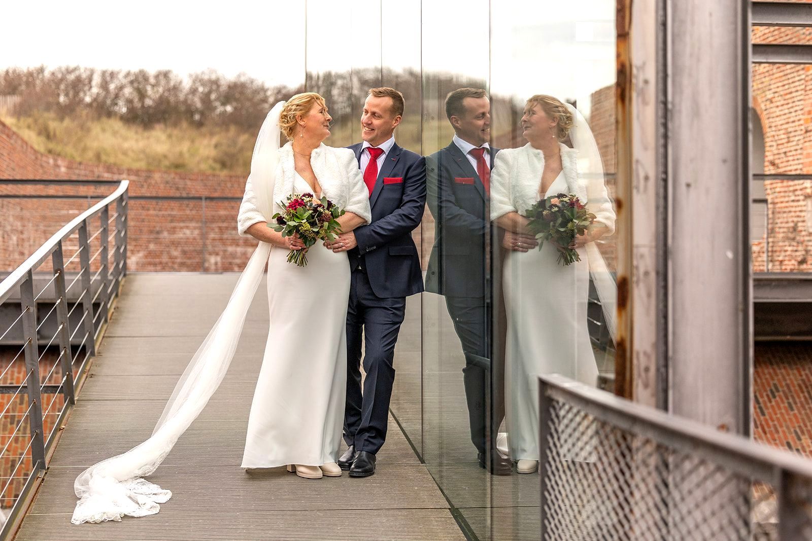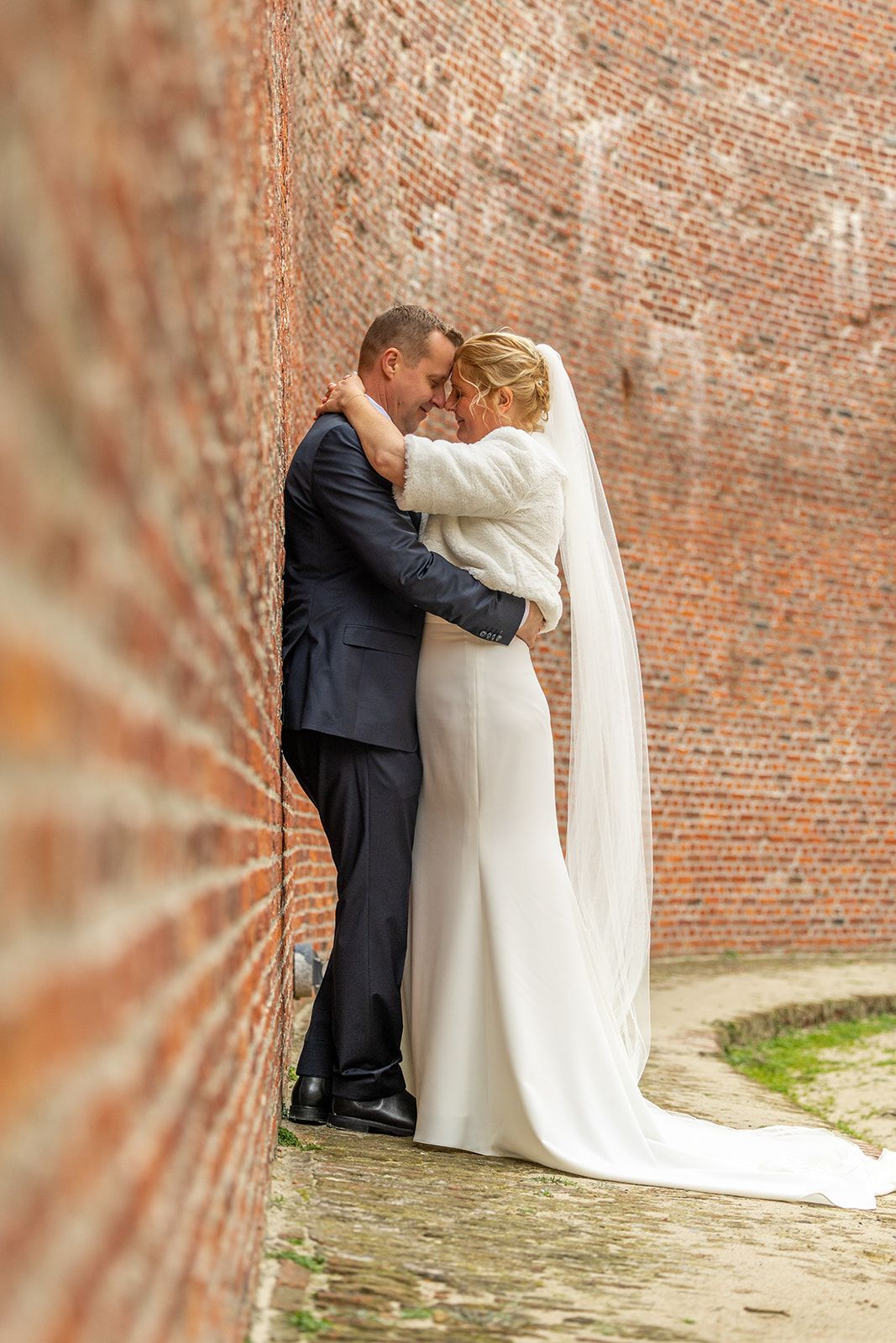 Na het jawoord trokken Jullie en Arne naar Fort Napoleon, een historische locatie die perfect is voor een romantische huwelijksreportage in Oostende. De robuuste muren en charmante binnenplaatsen vormden een prachtig contrast met hun elegante trouwkleding. Hier konden ze even ontsnappen aan de drukte en genieten van een intiem moment samen.